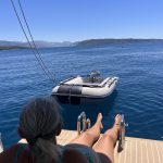 Wir sind Abends nach einem Sturmtief los und hatten uns etwas mit dem alten Seegang verschätzt, der uns sehr unangenehm durch die Nacht geschaukelt hat. Dafür war der Rest der Überfahrt dann ganz angenehm. Kurz vor der Italienisch-Griechischen Seegrenze bekamen wir auf einmal Besuch aus der Luft. Die Coastguard wollte wohl checken, ob wir Flüchtlinge an Bord haben.. . Im Süden von Kefalonia legen wir uns gerne nach Ankunft gleich in eine der Buchten vor Anker, schlafen uns erstmal aus und testen das Wasser, das so um die 20 Grad hat.