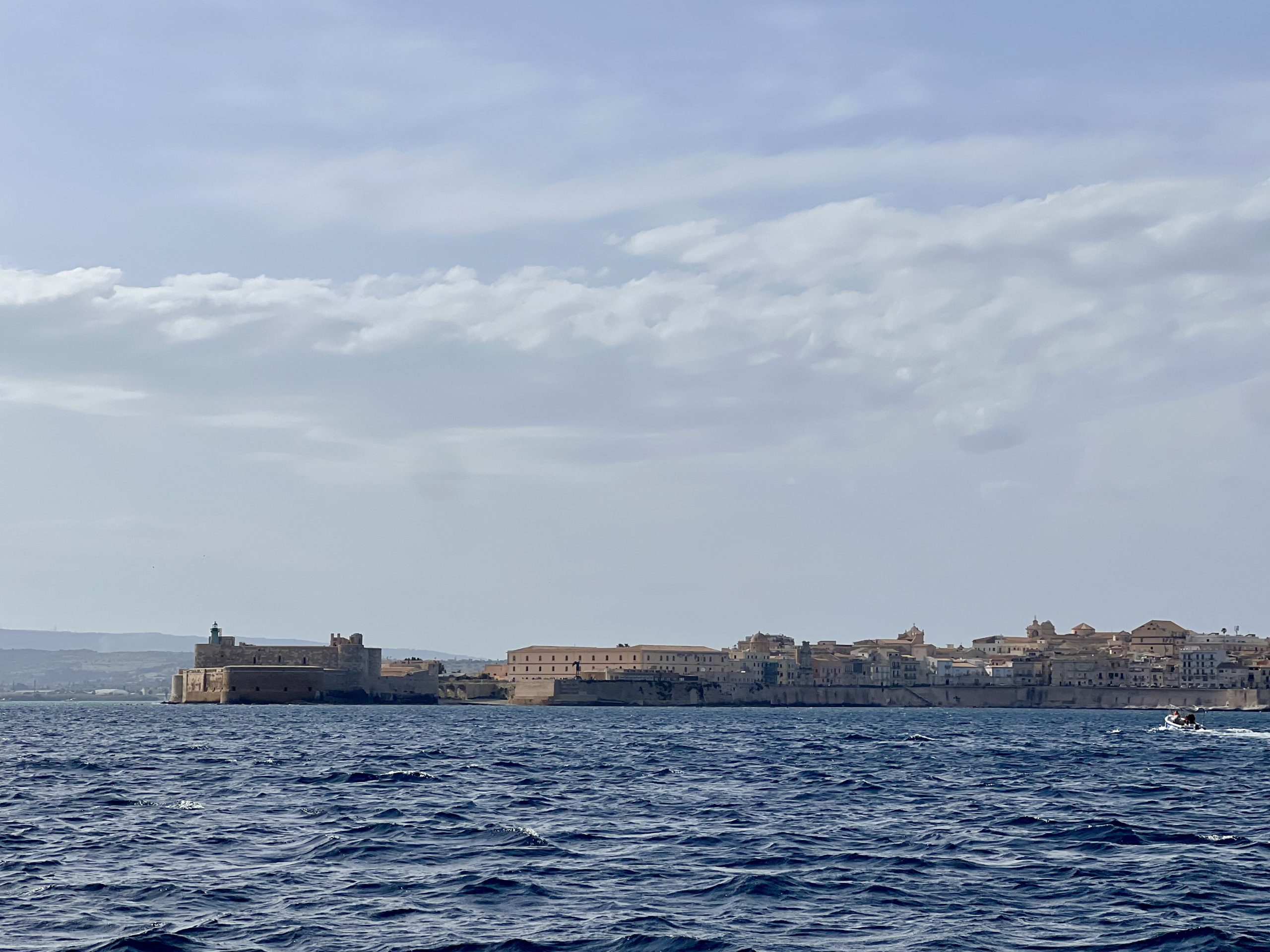 Wir haben Anfang Mai Marina di Ragusa verlassen und in der Bucht von Siracusa auf ein passendes Wetterfenster für den Absprung nach Osten gewartet. Der schnellste Weg ist direkt 250 Seemeilen nach Kefalonia rüber, aber für die zwei Tage und Nächte muss das Wetter passen.