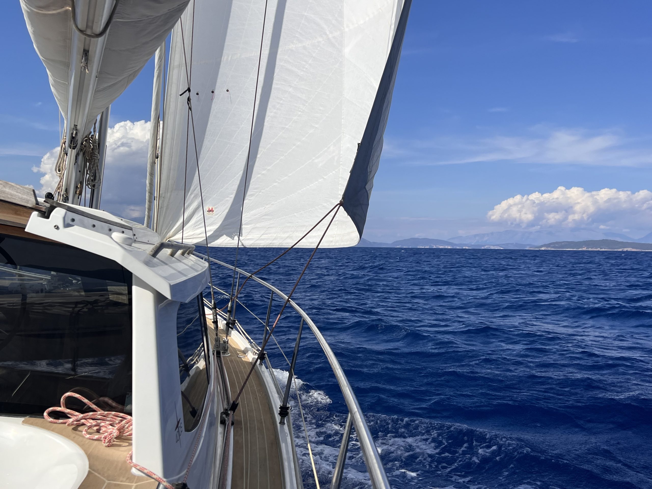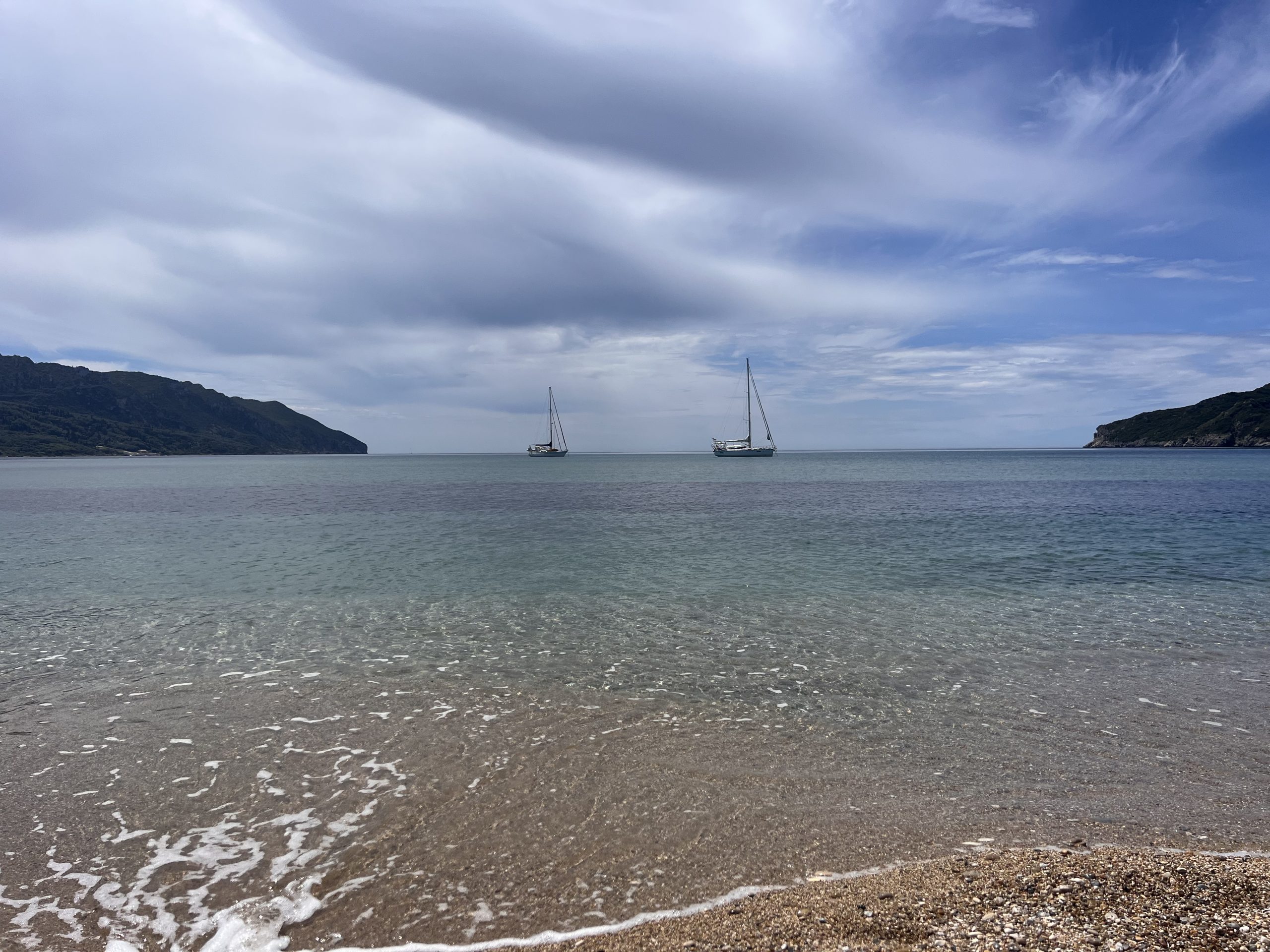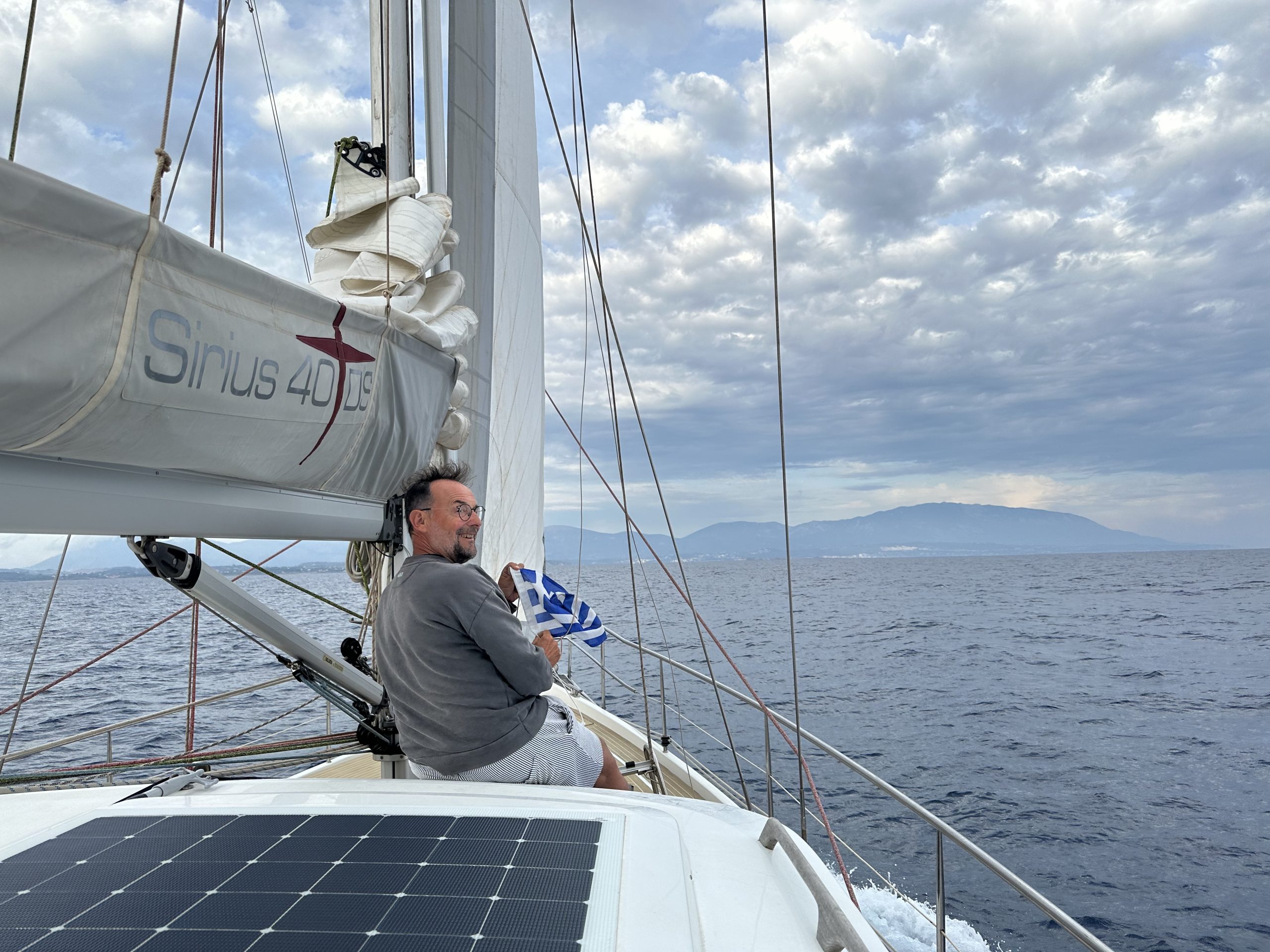 Wir sind Abends nach einem Sturmtief los und hatten uns etwas mit dem alten Seegang verschätzt, der uns sehr unangenehm durch die Nacht geschaukelt hat. Dafür war der Rest der Überfahrt dann ganz angenehm. Kurz vor der Italienisch-Griechischen Seegrenze bekamen wir auf einmal Besuch aus der Luft. Die Coastguard wollte wohl checken, ob wir Flüchtlinge an Bord haben.. . Im Süden von Kefalonia legen wir uns gerne nach Ankunft gleich in eine der Buchten vor Anker, schlafen uns erstmal aus und testen das Wasser, das so um die 20 Grad hat.