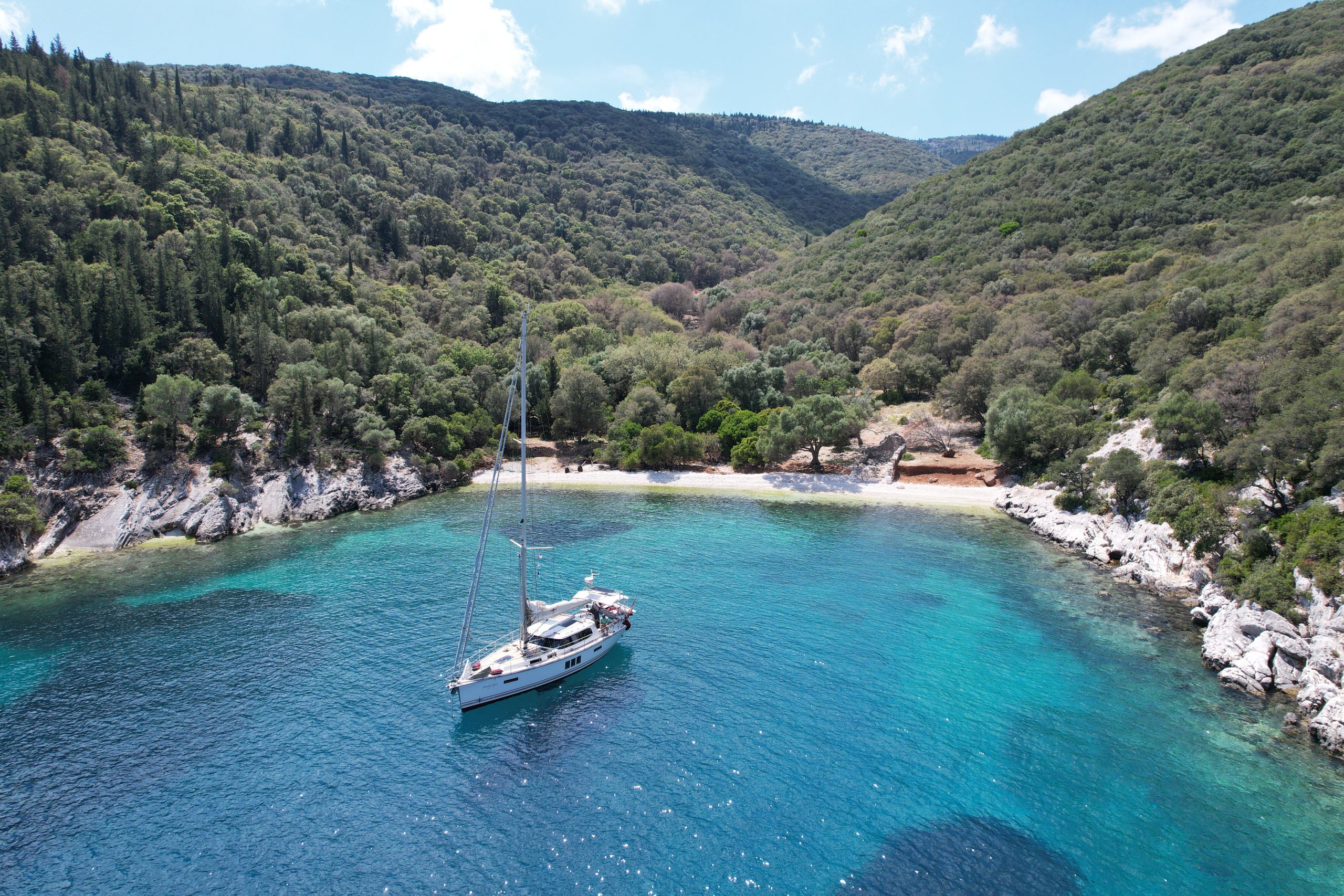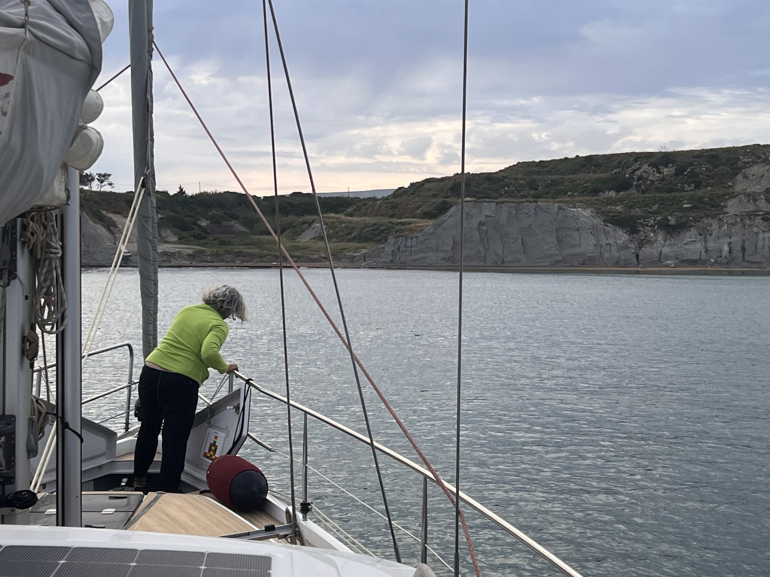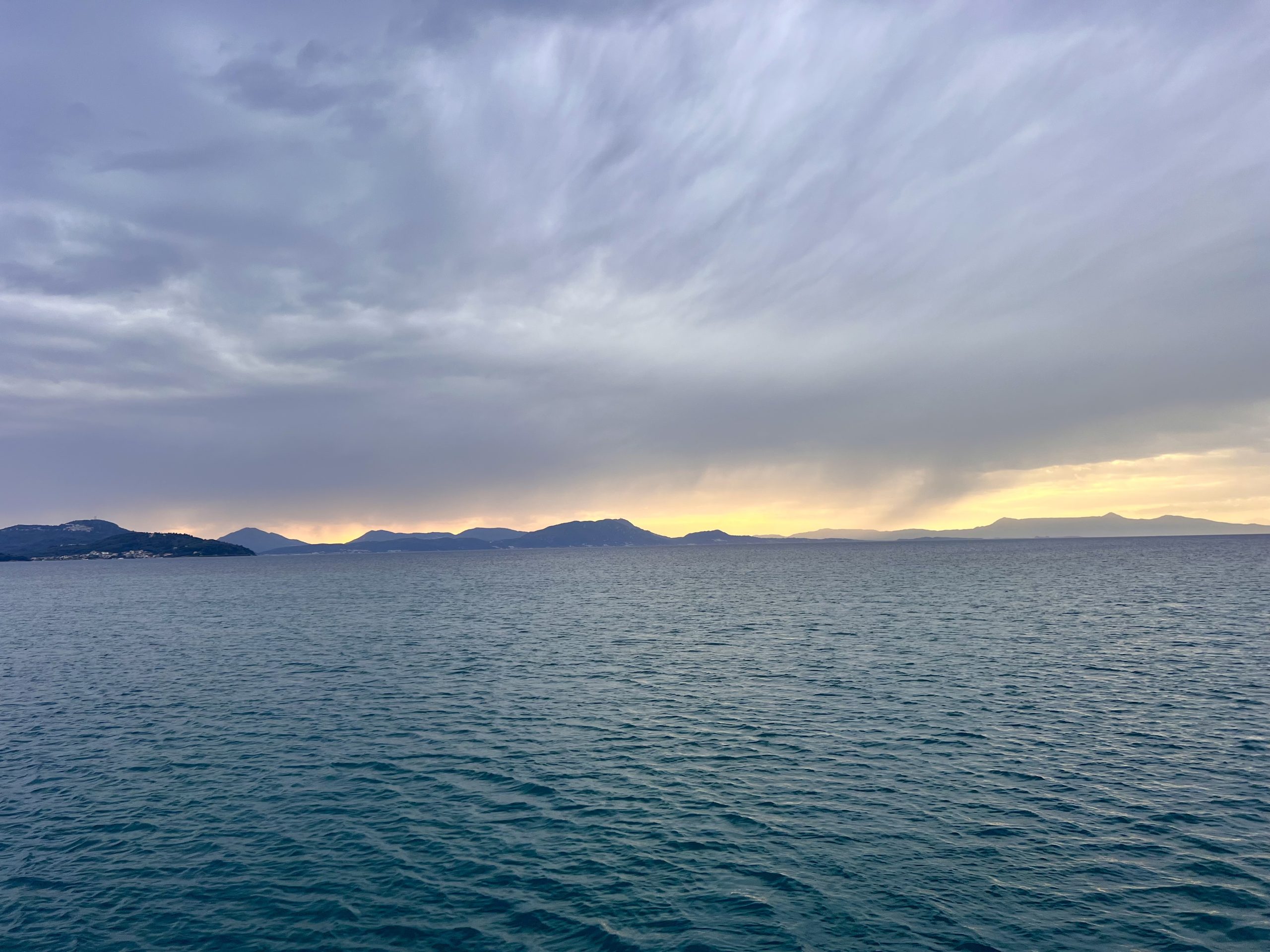 Wir sind Abends nach einem Sturmtief los und hatten uns etwas mit dem alten Seegang verschätzt, der uns sehr unangenehm durch die Nacht geschaukelt hat. Dafür war der Rest der Überfahrt dann ganz angenehm. Kurz vor der Italienisch-Griechischen Seegrenze bekamen wir auf einmal Besuch aus der Luft. Die Coastguard wollte wohl checken, ob wir Flüchtlinge an Bord haben.. . Im Süden von Kefalonia legen wir uns gerne nach Ankunft gleich in eine der Buchten vor Anker, schlafen uns erstmal aus und testen das Wasser, das so um die 20 Grad hat.