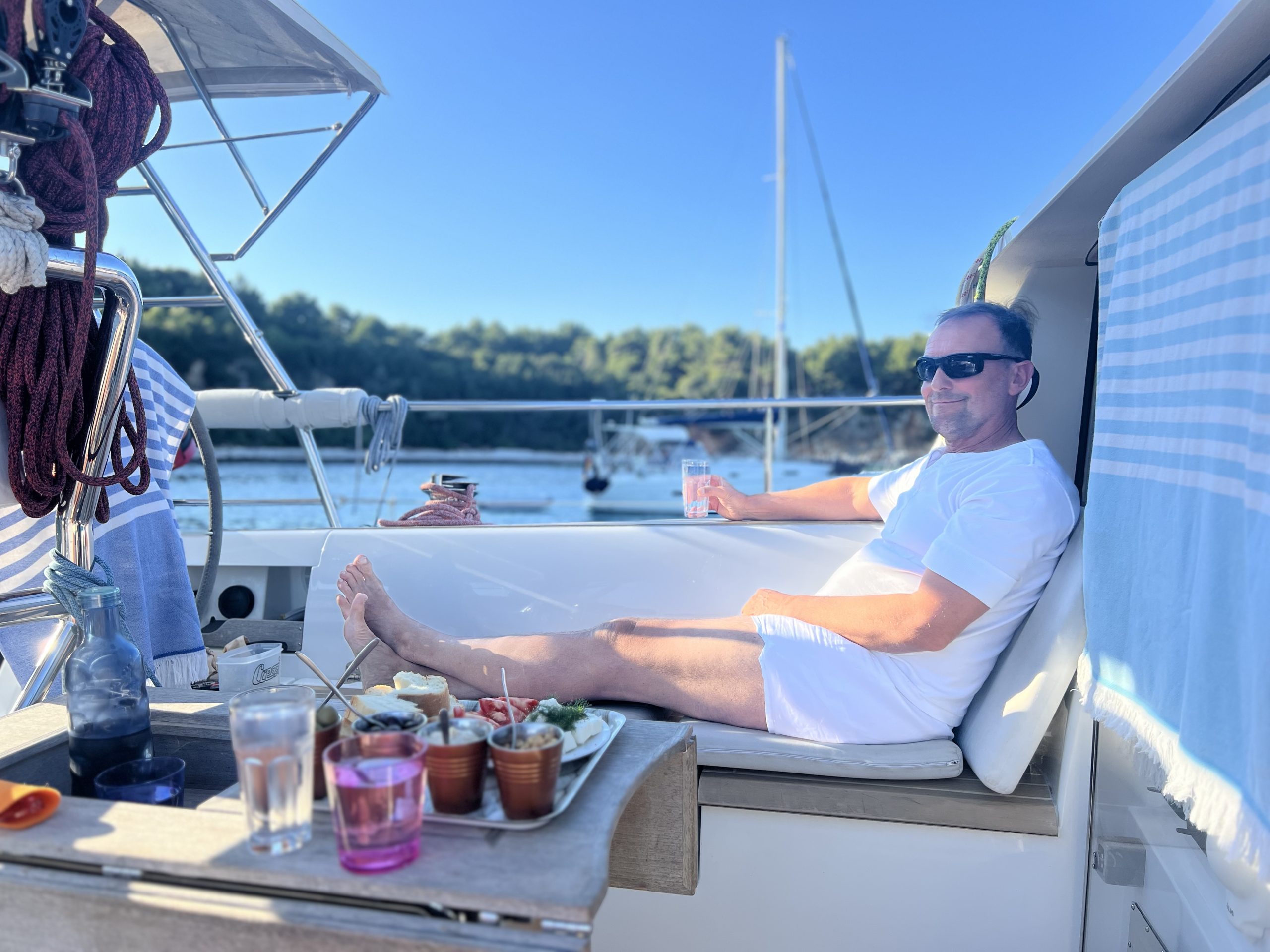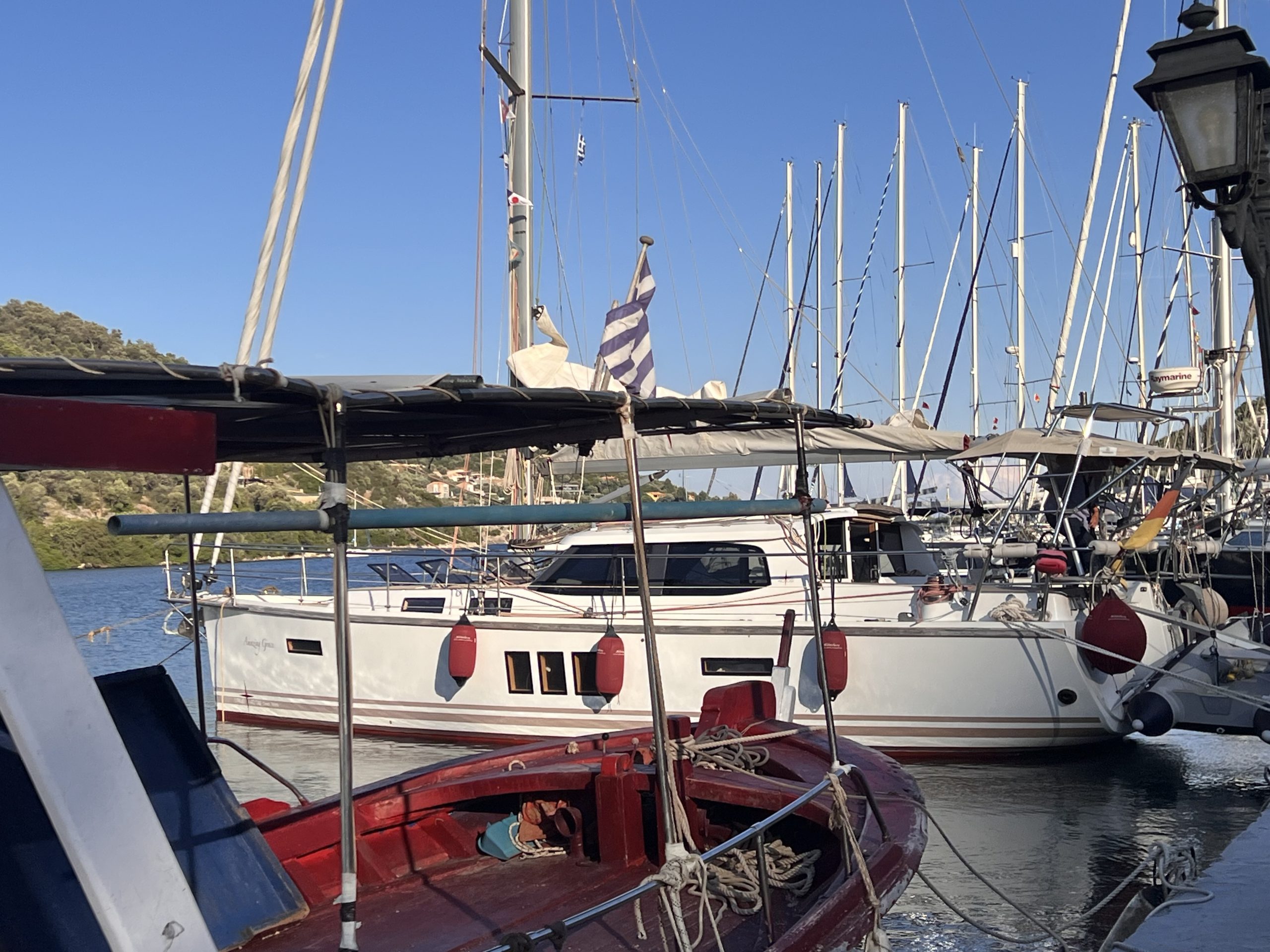 Wir haben uns langsam, von Bucht zu Bucht, nordwärts gehangelt, bis es uns ab Mitte Juli zu warm und zu voll wurde. Dies war wieder die perfekte Zeit, um die „Amazing Grace“ in Preveza an Land zu stellen und, während unseres „Urlaubs“ in Deutschland, die notwendigen Arbeiten am Unterwasserschiff erledigen zu lassen. Unser Boot war ja den ganzen Winter über im Wasser gewesen)